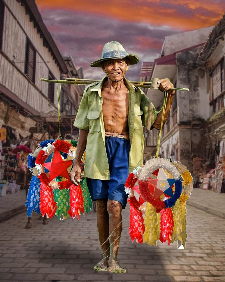 After more than twenty years of commissioned Filipino Christmas artworks, it’s probably inevitable that subjects will start to recur. Of the three studies, “Airplane Gift” and “Friends Celebrating their First Parol,” to my eyes and mind, reminded me the most of previous Christmas card covers, therefore I asked the artist to progress “Parol Vendor,” in particular.